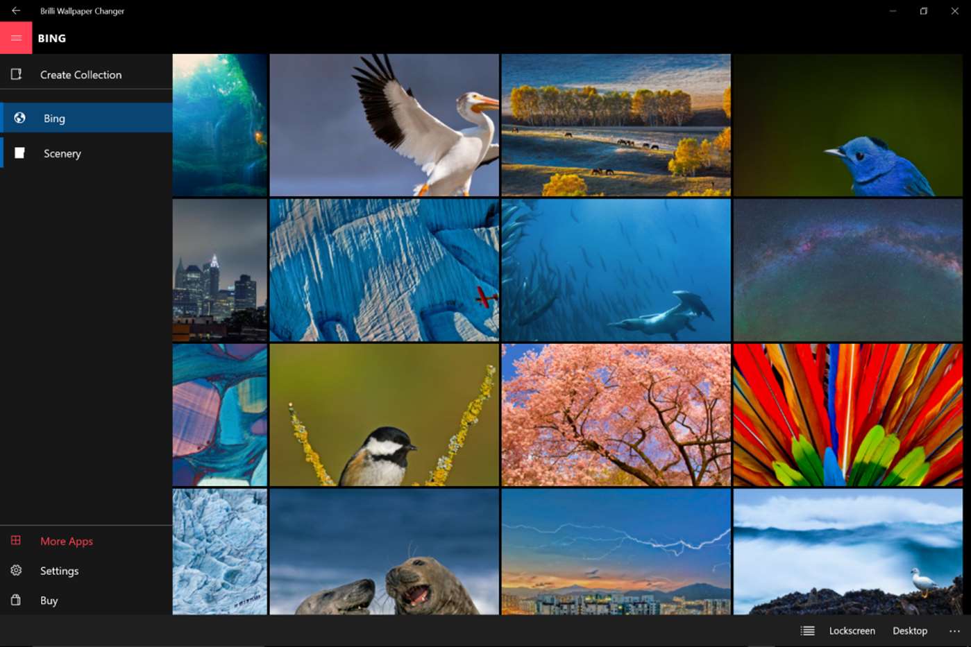 Brilli Wallpaper Changer is a fascinating app for a few reasons. For one, it is universal. That means the app runs on your Windows 10 PC, tablet, Surface and phone. The other is that it can change your lockscreen, desktop and Start screen automatically every 15 minutes (or more).