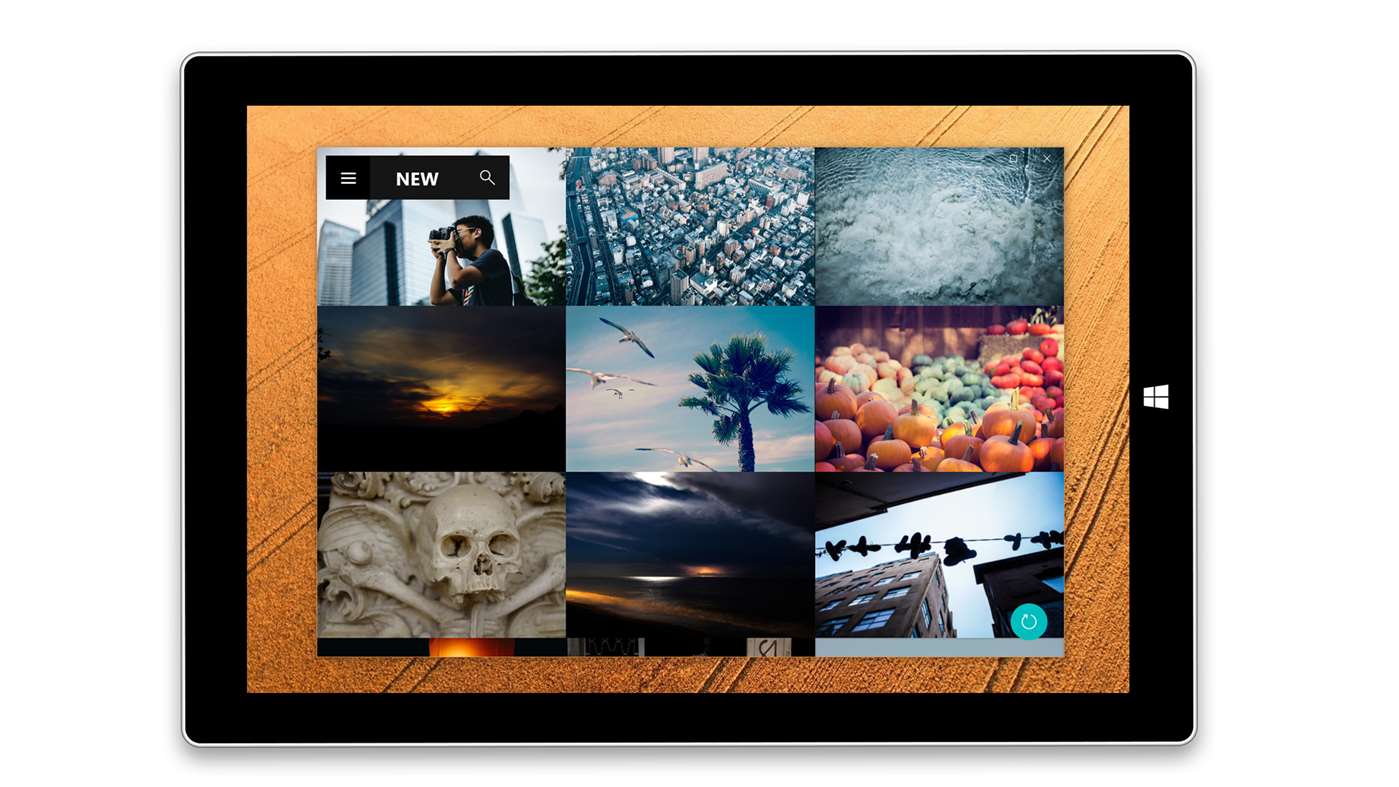 The app has a very minimalist design on PCs, dedicating almost all the visible UI space to displaying a grid of photos available in the app, with an unobtrusive hamburger menu which allows you to select photo categories.